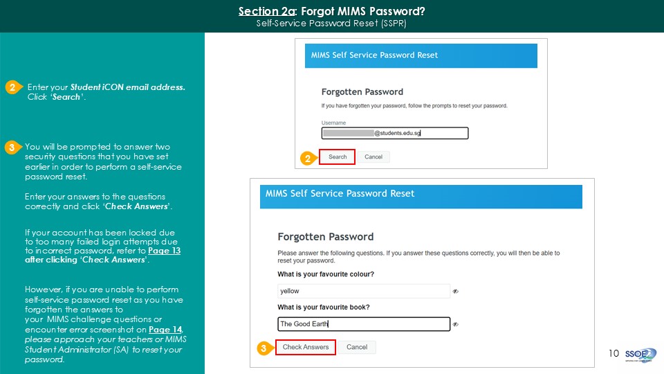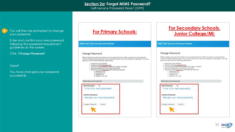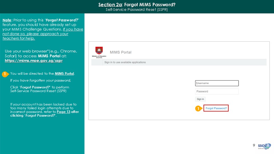 URL for self service reset password: https://mims.moe.gov.sg/sspr
